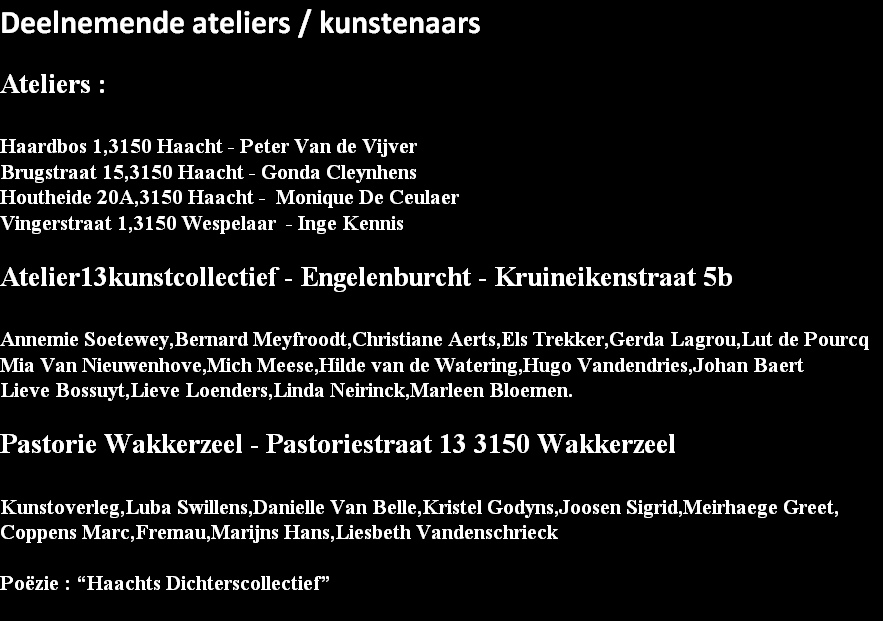 voor het publiek. Met Atelier in Beeld maakt de Kunststichting Perspektief vzw i.s.m. de Cultuurdienst Haacht niet alleen het